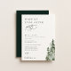 Pinheiros Elegantes da Floresta de Cores-d'Água, Felizmente Depois De Convite de festas. Tipografia a cores pretas com fundo branco colorido na frente e coordenando o apoio a cores verdes.
