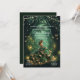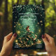 Celebre o marco da sua filha com estilo majestoso com este convite de Quinceañera da Floresta Encantada Esmeralda. Este deslumbrante design apresenta uma jovem encantadora em um traje verde e dourado ornamentado sentada em uma floresta encantada repleta de lanternas brilhantes, borboletas mágicas e faíscas douradas. A iluminação dramática e os tons ricos da floresta criam uma atmosfera de conto de fadas elegante, perfeita para uma celebração de quince anos com tema de fantasia.