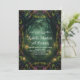 Defina o tom para uma noite mágica com este convite de aniversário deslumbrante de uma floresta mística. Com um dramático caminho de floresta verde escura iluminado por lanternas brilhantes e emoldurado por um elaborado trabalho de flores coloridas, este design é ideal para qualquer celebração encantada. Seja um sweet sixteen, aniversário de data importante ou evento noturno elegante, este convite captura o mistério e o encanto de uma floresta de contos de fadas.