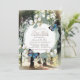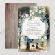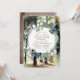 Este brilhante primeiro convite da comunidade santa apresenta uma coroa de flores brancas e folhagem verde com borboletas azuis sobre um fundo florestal encantado. O verso apresenta padrões de madeira castanha. Personalize-o para as suas necessidades. Você pode encontrar produtos correspondentes na minha loja.