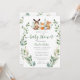 Este convite inclui animais de floresta bonitos com folhas folíadas de verde e de folha de ouro. Adequado para chá de fraldas de menino e de menina.