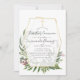 Floresta verde primeiro convite de comunhão sagrado com ervas selvagens, samambaias, folhas e eucalipto com estrutura geométrica de ouro personalizável para seus detalhes de evento.