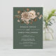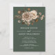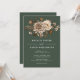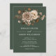 Convites elegantes de casamento com flores de estilo boho em tons de marfim e marrom profundo em um fundo verde escuro. Layout de texto simples com um cabeçalho floral bonito. Ideal para um casamento outono ou para qualquer casamento com uma paleta de cor de tom de joia.