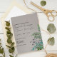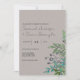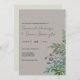 Um encantador convite botânico para o casamento com um tema florestal de folhas de folhagem verde, bagas e pequenos ramos sobre um fundo de cinzas de ardósia pálido. Esta simples e rústica design seria mais adequada para uma cerimônia de casamento de jardim, primavera, ao ar livre ou de temas botânicos.