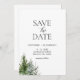 Floresta Salve a Data do casamento da pinheira de inverno Convite. é um roteiro elegante, aquarela Ilustração de pinheiros da floresta de inverno cheios de neve, perfeito para seu casamento no inverno e festas. Posicione letras suaves fora de preto com uma borda inferior de pinheiros verde-aquarela. Uma escolha chique para casamentos no inverno em áreas de floresta, montanha ou floresta, esses cartões salve a data chatos elegantes são fáceis de personalizar com seus nomes, data do casamento, local do casamento e site ou uma indicação de que um convite formal se seguirá.