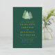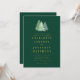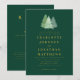 Convite de casamento com código QR em aquarela simples floresta verde dourada Convite com árvores de abeto em aquarela e neve e tipografia moderna elegante em verde esmeralda escuro