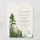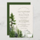 Pinheiros e aspergaminhos com montanhas distantes com neblina... ... ... ... ... ... ... ... ... ... ... ... .... ... ... ... ... ... ... ... ... .... ... ....................................................................................................................................................................... O reverso é um rico verde florestal. Elegante com encanto rústico, estes convites são perfeitos para casamentos externos, montanhas.