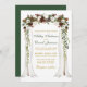 O Cartão de Convite para Casamento Floral da Floresta Castanho Verde de Casamento Elegante inclui lindas flores brancas e marrons. O arco da copa do casamento da madeira inclui vegetação botânica. Dourado Script.