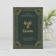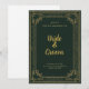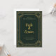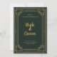 Rico, elegante e profundamente romântico. Este convite de casamento Art Déco apresenta um fundo verde floresta exuberante combinado com detalhes geométricos dourados – motivos de leque, chevrons nítidos e linhas delicadas. O tom de joia profundo combinado com dourado metálico cria um visual luxuoso e vintage inspirado na natureza. Perfeito para casamentos de outono, inverno, floresta ou black tie.