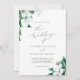 Este convite de casamento para florestas verdes é perfeito para um verão ou casamento outono. A design do boho moderno apresenta folhas de esmeralda, sábio e aquarela verde-oliva e botânicos com esférulas de flores brancas elegantes.