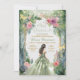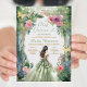 Forest Sage Green Dress Pink Flowers 15 Mis Quince Convite Quinceañera 15 Anos, 16 Anos Aniversário Dourado Borboleta