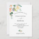 Um simples convite para o casamento. Um fundo branco chic. Decorados com flores de cor aquosa, flores em ouro branco, cor-de-rosa e rosa com verde. Personalize e adicione seus nomes e detalhes do casamento. Texto preto. Fundo branco.