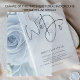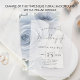 Fundo de Florais Azuis Estanjados para Vellum. Lindas flores azuis e brancas pálidas para um belo fundo para um convite de velvéu. Há uma camada de opacidade sobre as flores, de modo que o texto no convite de vellum se destacará quando colocado sobre a carta com sua foto. Você pode excluir esta camada de opacidade se preferir. As opções para os convites de vellum a colocar no topo do cartão com esta ilustração floral estão disponíveis para comprar separadamente nesta coleção. Substitua o exemplo de foto no verso por seu favorito. Adicione seu código QR ao seu site de casamento no verso faz com que esta seja uma opção conveniente para seus convidados para RSVP e veja todos os detalhes sem a necessidade de RSVP separado e cartões de detalhes. Seu código QR será gerado automaticamente para atualizar o código de amostra no design, quando você simplesmente alterar o URL de amostra no modelo com o URL do seu próprio site de casamento.