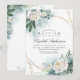 Mola aquosa, moldura geométrica dourada e convites para batismo de peões brancos