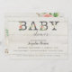 A pincel de aquarela pintada à mão e as pulverizações florais brancas são emparelhadas com um fundo de madeira de aquarela rústica, mas elegante, para um chá moderno e simples para bebês. Um conjunto completo de produtos está disponível para corresponder. Copyright, Audrey Jeanne Roberts.