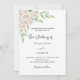 Fundo branco, decorado com flores brancas, peões e verde. Personalize e adicione o nome da noiva a ser e os detalhes da festa. Letras pretas e ouros coloridas. Voltar: adicione o URL do seu site de casamento ao código QR para obter detalhes e/ou RSVP.