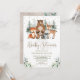 Convite para chás de fraldas de madeira branca com ilustração adorável de aquarela de quatro amigos da floresta