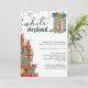 Festa de troca de presentes de elefante branco com presentes embrulhados em presentes, meias de natal e luzes de cordas. O modelo está configurado para você personalizar com suas próprias regras e instruções. Design de aquarela com título manuscrito e paleta festiva de cor vermelha e verde. Por favor, procure na minha coleção do Grupo de troca de presentes alternativos, incluindo coisas favoritas, troca de yankee e papais noeis secretos.