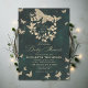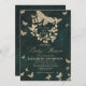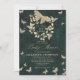 Uma coroa branca, em cascata, de folhagem esmagadora, bem como uma borboleta espumante com luzes de fadas e poeira mágica, pregada com efeito dourado (isto é um efeito digital, não uma folha real ou um brilho!) decoram este primavera de verão outono, convite para chás de fraldas de inverno com um tema de floresta encantada e um tema de borboleta, além de um fundo verde esmeralda. Um convite elegante e moderno para um chá de fraldas de conto de fadas. Perfeito para mães e pais que amam o cenário de conto de fadas, o tema da floresta de fadas ou do jardim de fadas, o tema da borboleta e o verde esmeralda.