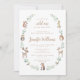 Descubra a sofisticação no nosso encantador convite para chá para o bebê, apresentando adoráveis criaturas de aquarelas da floresta aninhadas dentro de uma pincelada de galhos de árvores. Com urso, coruja, ouriço, veado, coelho, esquilo e pássaros intricadamente entrelaçados em meio ao verde-verdinho, esse convite saúda a chegada do pequeno selvagem ao estilo elegante. Perfeito para celebrações inspiradas na natureza, esse convite dá o tom para um chá de fraldas encantador de matas cheio de alegria e antecipação.