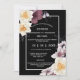 Uma bela ilustração com aquarelas que apresenta flores silvestres em tons de canela empoeirada e bonito flores amarelas pálidas daffodil contra uma incrustação preta revestida com uma borda branca. As flores florais têm delicadas flores de falso prata ao seu redor e as costas ecoam o mesmo sentimento clássico luxuoso e elegante. Sinta-se livre para excluir ou mover os modelos e alterar o tamanho e o estilo das fontes, se preferir. Estes são ideais para pequenos casamentos familiares íntimos; para festas de casamento e festas de marcenaria de destino nacional ou para aniversário; ocasiões de noivado e aniversário especial.