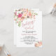 Design único e elegante para uma Festa de solteira. Apresenta flores cor-de-água, cor-de-rosa, cor-de-água esbranquiçada, letra rosa de ouro falso moderna "BACHELORETTE WEEKEND" e "DETAILS". Use a ferramenta Personalizar para adicionar informações. Mais ideias na minha coleção de Festas de solteira.
