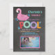 Foto do convite de festas do flutuador da piscina do divertimento que inclui um flutuador do flamingo. Impressão traseiro incluído.