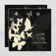 As borboletas, fluindo, em silhuetas cremosas sobre fundo preto rico e folhas ornamentais desbotadas embelezadas com espirros e caracóis em creme em azul. Para uma ocasião fantástica. casamento, aniversário, casa aberta, convite para um leilão!! Para mais cores >> Agora você pode escolher suas próprias cores hexacrônimas para adicionar ao seu fundo, texto, aparato, etc. O espectro inteiro do arco-íris está nas pontas dos dedos. Abaixo há um link para "gráfico hexarome". Primeiro, simplesmente clique no botão "personalizar" >> e vá para a guia "cor", >> clique em "fundo" e escolha sua cor.com e PixDezines no zazzle.com