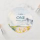 Cartão de número de tabela botânica de cor d'água elegante em um formato redondo exclusivo enquadra seus detalhes com montanhas de cor d'água de borda e florais em tons pálidos e legal de azul empoeirado, cinzentos, amarelos e verdes. A fonte é definida em sans serif e tipografia de script modernos. Perfeito para primavera, verão, outono do outono, casamentos temáticos rústicos ou jardins. Para ver mais designs como este, visite o VG Invites em www.zazzle.com/vginvites