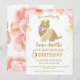 Apresentamos o nosso adorável convite de aniversário da menina dinossauro princesa dourada, a combinação perfeita de encanto e diversão pré-histórica! Este convite encantador combina a elegância de um tema de princesa dourada com o espírito lúdico dos dinossauros, criando uma celebração verdadeiramente única para o dia especial da sua filha. As aquarelas florais delicadas adornam o convite, adicionando um toque de fantasia à atmosfera da festa de aniversário real. Seja um aniversário de princesa solo ou uma celebração combinada para duas meninas, este convite prepara o cenário para uma experiência mágica e inesquecível.