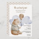 Cute We Can BEARLY (Mal) Wait Detalhes do Chá de fraldas - Teddy Bear com balão no convite para Chás de fraldas de nuvem ... simplesmente preencha seus detalhes sobre este convite personalizável para personalizar para atender às suas necessidades, ideal para todos os bebês .. produtos para bebês do Ricaso