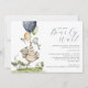 Um belo chá de recursos que podemos esperar em tipografia de script com um urso e balões. Personalize os principais detalhes, como a mãe, para que seja nome, data e hora do evento, local, RSVP e informações de registro.