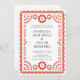 Este belo papel picado inspirou um design de convite de casamento que apresenta um quadro ornamentado em vermelho quente, um fundo branco clássico e a tipografia moderna. Esta elegante, porém moderna design é uma escolha fabulosa para um casamento de Latinx ou para o casamento de destino do México. Você pode personalizar este design ainda mais adicionando uma foto ou texto adicional ao backer. Veja mais na coleção acima...