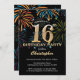 16º aniversário Convite para fogos de artifício preto e Dourado Rainbow. Para mais personalização, clique no botão "Personalizar" e use nossa ferramenta de design para modificar este modelo.