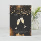 Véspera de Ano Novo: um fundo negro com fogos de artifício dourados e óculos de champanhe.