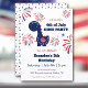 Convite de aniversário de dinossauro para crianças com dino e fogos de artifício lindos patrióticos em cores nacionais. Pequenas estrelas no fundo. Personalize facilmente este convite de festas de 4 de julho com os detalhes do seu partido. - Kate Eden Art