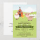 Bonita Casca e Animais de Fazenda, Menina neutra do tema do agricultor ou convite para chás de fraldas de menino. Personalize este convite bonito e retrógrado; pode ser para chá de fraldas de menino ou de menina ou pode ser trocado para o borrifo de bebê. Bela, simples, design simples. Possui celeiro laranja e marrom, vaca bronzeada, ovelha branca, galinha amarela, cerca branca de piquete, grama verde, céu azul e flores cor-de-rosa. Excelente para fazendeiro do país, fazenda, animais de fazenda tema chá de fraldas ou borrão!