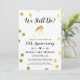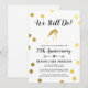 Um convite simples e elegante para uma celebração de aniversário de casamento. Pontos de foil dourado rodeiam a silhueta de uma noiva em foil dourado. As cores do fundo e da fonte podem ser alteradas para combinar com o tema do seu evento.