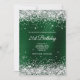 Um convite feminino moderno para sua celebração de aniversário. Decoração esbranquiçada brilhante prateada superior e inferior contra um gráfico digital de folha esfregada verde escura. A caligrafia moderna e o estilo, tamanho e cor do texto podem ser personalizados. Todo brilho e brilho nesta design de gradiente feminino moderno são imagens digitalmente criadas. aniversário de 21 anos. Ela tem vinte e um anos.
