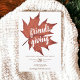 Amigos dando! Uma mão rústica pintou folha de carapaça castanha vermelha no convite de Ação de Graças.
