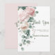 Um pastel de aquarela colorido flor com lindos peões cor-de-rosa e hortelã verde e eucalipto deixa o Casamento Obrigado Convite é perfeito para casais que buscam um toque romântico em seu grande dia. Este quadro de flor de aquarela pintado à mão rodeia seus detalhes de casamento. Dê aos seus convidados um maravilhoso primeiro vislumbre do seu casamento para vir este convite será uma adição fantástica aos seus eventos de casamento.