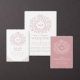 Convites Folha de monograma rosa cor de blush recepção de c