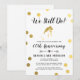 Um convite simples e elegante para uma celebração de aniversário de casamento. Pontos de folha de ouro rodeiam a silhueta de uma noiva em folha de ouro. As cores do fundo e da fonte podem ser alteradas para combinar com o tema do seu evento.