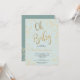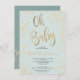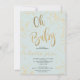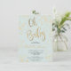 Folha de ouro moderna confete pastel azul empoeirado oh chá de fraldas com uma elegante escova de caligrafia.