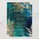 Esta design mostra um fundo verde esmeralda esmeralda com um efeito de galáxia do céu noturno feito em efeito de aquarela. Uma folha verde com efeito folha ouro adiciona mais detalhes à peça. A intrincada design vai bem com um casamento de outono, verão e primavera. Disponível como uma grande combinação com papéis de carta de casamento. Fontes modernas de caligrafia são usadas em letras ouros e brancas.