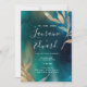 Esta design mostra um fundo verde esmeralda esmeralda com um efeito de galáxia do céu noturno feito em efeito de aquarela. Uma folha verde com efeito folha ouro adiciona mais detalhes à peça. A intrincada design vai bem com um casamento de outono, verão e primavera. Disponível como uma grande combinação com papéis de carta de casamento. Fontes modernas de caligrafia são usadas em letras ouros e brancas.
