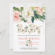 É o encantador convite para chás de fraldas de vassoura que apresenta florais cor-de-rosa esbatidos com folhagem verde fresca e letras de folha de ouro.