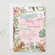 Estes convites apresentam folhas de palma com flores tropicais e flamingos cor-de-rosa em fundo rosa. Este convite é facilmente personalizado para o seu evento simplesmente adicionando os seus detalhes.