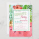 Esses convites apresentam folhas de palma com flores tropicais, abacaxi e melancia em fundo azul. Este convite é facilmente personalizado para o seu evento simplesmente adicionando os seus detalhes.
