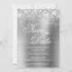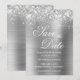 Um brilho de prata com uma sombra de cinza de prata para o seu casamento, salve as datas. A fonte decorativa "Salvar a Data" é um estilo clássico de caligrafia de rico em conjunto com um estilo de fonte moderno. Faux glam glitter para salvar as datas.